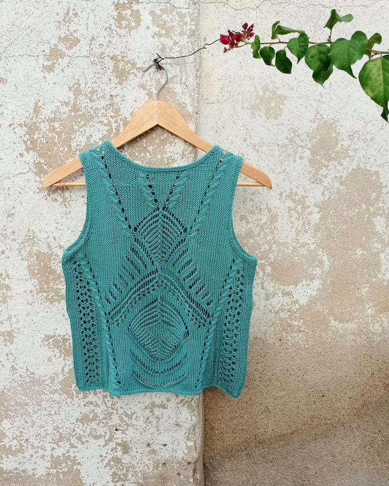🛒 Compra ahora el patrón de punto top calado Aire Tee y empieza a tejer tu nuevo top favorito.